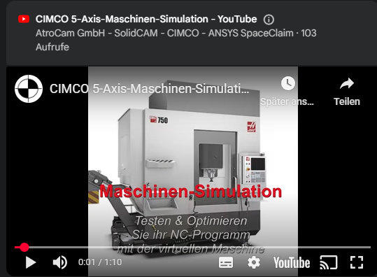 Hier ist ein Video zur CIMCO 5-Achsen-Maschinen-Simulation. Dieses Video demonstriert die Maschinensimulation,